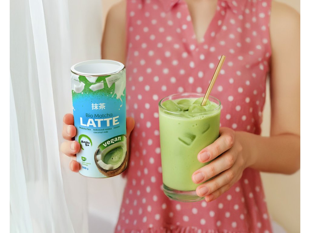 Rostlinné matcha latte pro vegany i milovníky kokosové chuti — studené i teplé, kdykoli během dne.