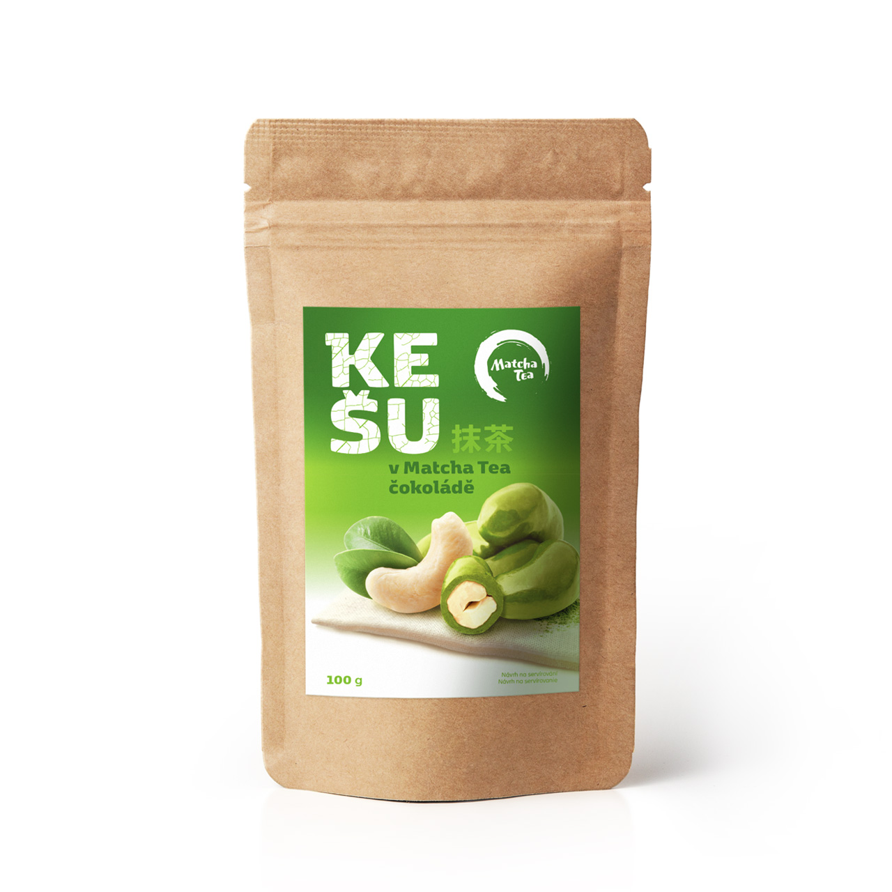 Kešu v matcha tea čokoláděJemná máslová chuť kešu, čaj matcha a bílá čokoláda tvoří přímo neodolatelnou kombinaci.