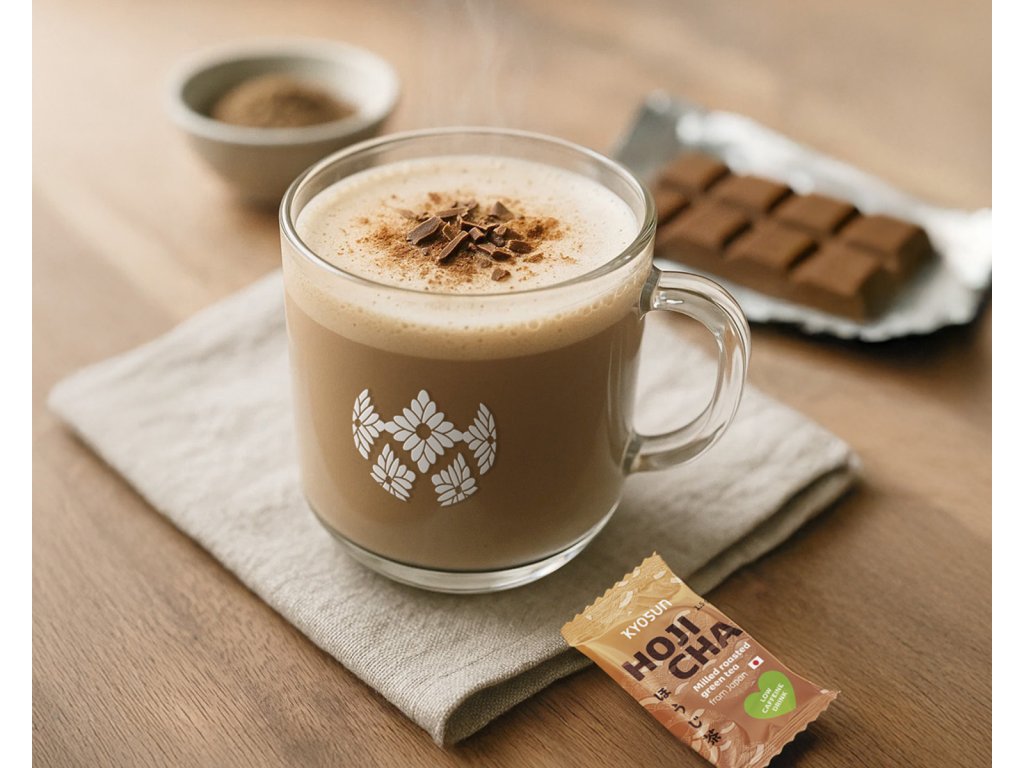 Hojicha je pražená verze japonského zeleného čaje — stejná rostlina jako matcha, ale zcela odlišná chuť.
