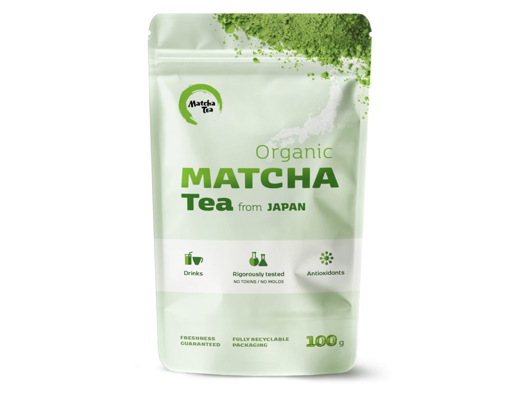 100% Bio zelený čaj matcha z Japonska — 100g uzavíratelný doypack