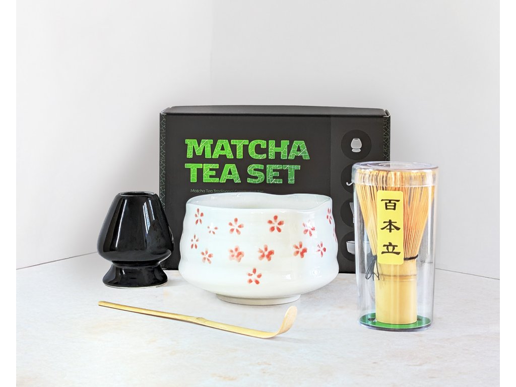 | Obsah sady | Chawan, chashaku, chasen, stojánek na metličku |